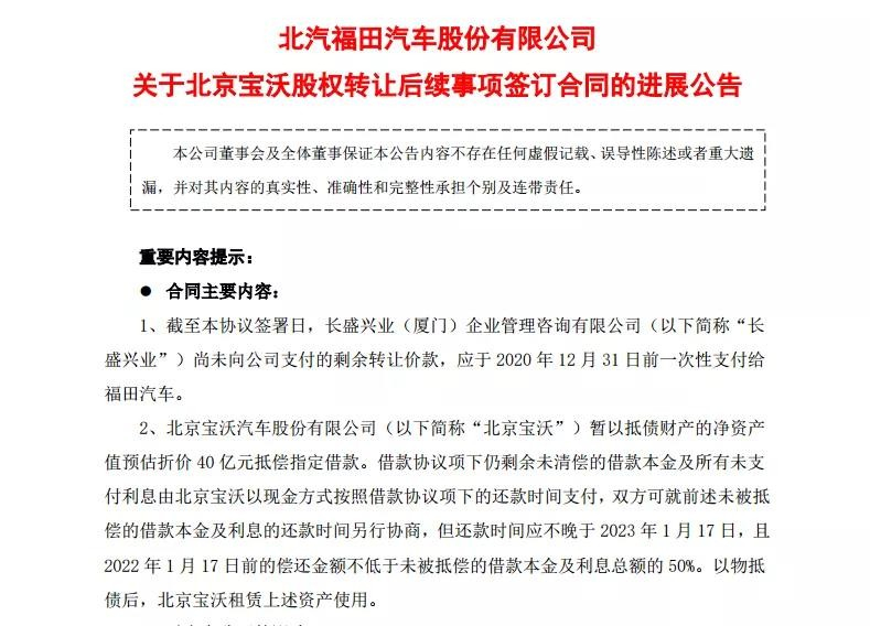 ▲北汽福田汽車轉(zhuǎn)讓寶沃汽車67%的股份