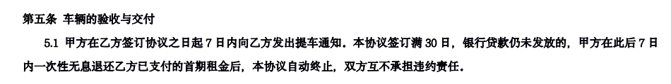 ▲購車協(xié)議承諾7日內(nèi)發(fā)出提車通知