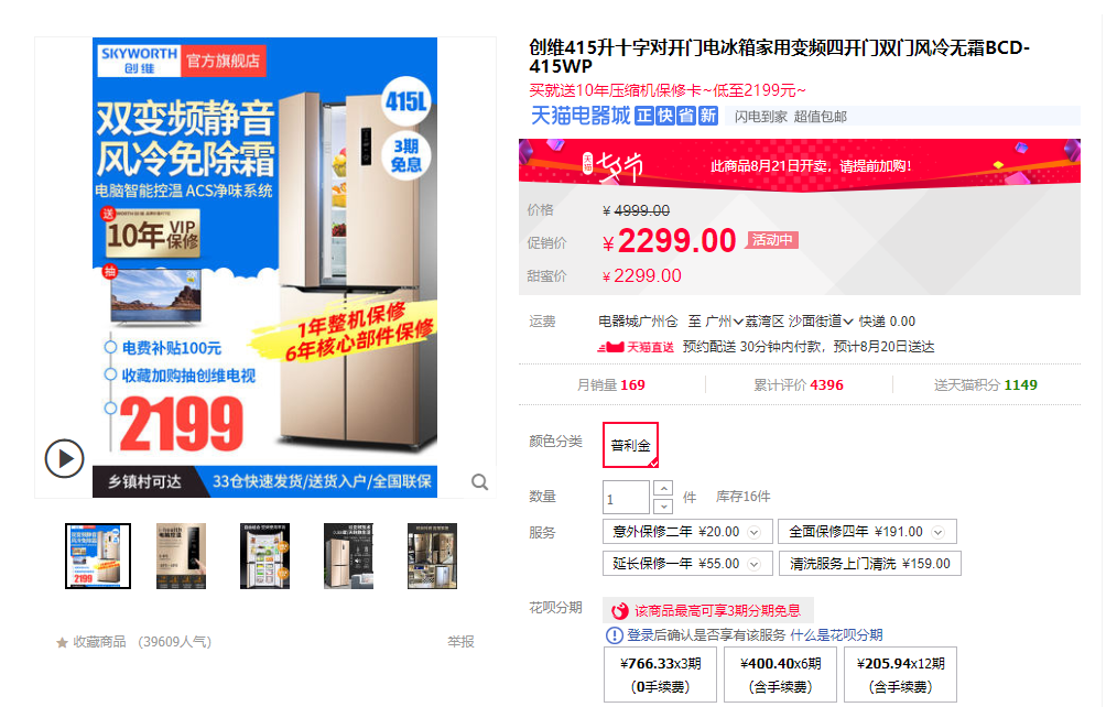 今年7月1日,王先生花費1999元,在天貓創(chuàng)維冰洗旗艦店購買了一臺型號為BCD-415WP的電冰箱。出乎王先生意料的是,這臺電冰箱在購買一個月后就出現(xiàn)故障。