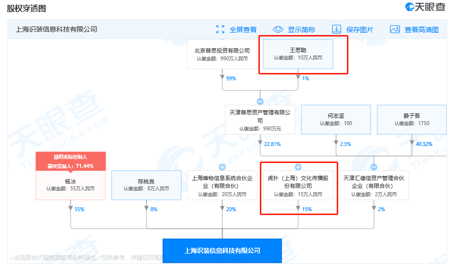 虎撲(上海)文化傳播股份有限公司持有得物APP 15%的股份,為第三大股東,而王思聰?shù)钠账假Y本入股的天津匯德信資產(chǎn)管理合伙企業(yè)(有限合伙)則持股2%。