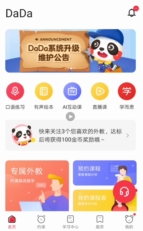 但一切在2020年5月21日發(fā)生了變化。丁欣告訴《消費者報道》,DaDa英語app首頁的小窗口忽然閃起了一則“系統(tǒng)升級”公告。丁欣稱,公告在App最上面的窗口欄里閃過,很多家長都會忽略,她本人也從不關注這個窗口的內容。直到有次在群里看到家長在談論這個公告,丁欣才打開App閱讀了這份公告。