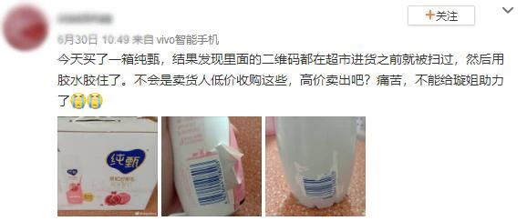 無(wú)獨(dú)有偶,《消費(fèi)者報(bào)道》通過(guò)關(guān)鍵詞在社交平臺(tái)檢索發(fā)現(xiàn),不少消費(fèi)者也遇到相同的情況,本打算一箱箱的購(gòu)買(mǎi)蒙牛純甄小蠻腰為小姐姐掃碼撐腰,購(gòu)買(mǎi)時(shí)箱子外包裝沒(méi)有任何破損,打開(kāi)卻發(fā)現(xiàn)所有瓶標(biāo)的二維碼被剪開(kāi)使用。