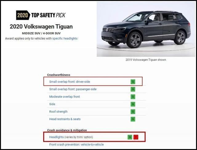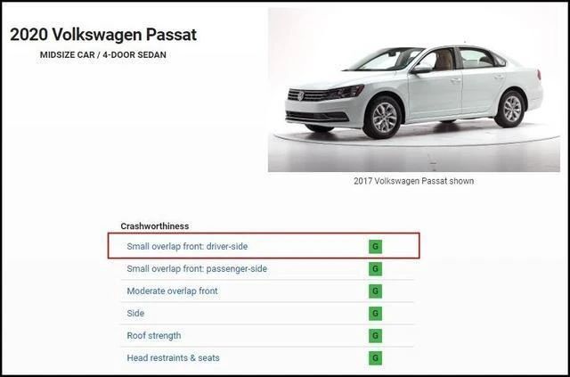 ▲美版帕薩特和美版途觀多項測試成績?yōu)閮?yōu)秀(來源:IIHS)