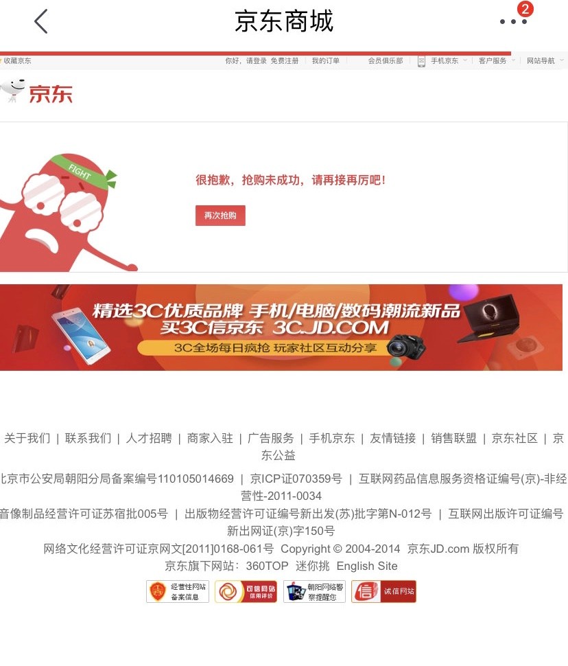 ▲京東口罩搶購(gòu)失敗頁(yè)面