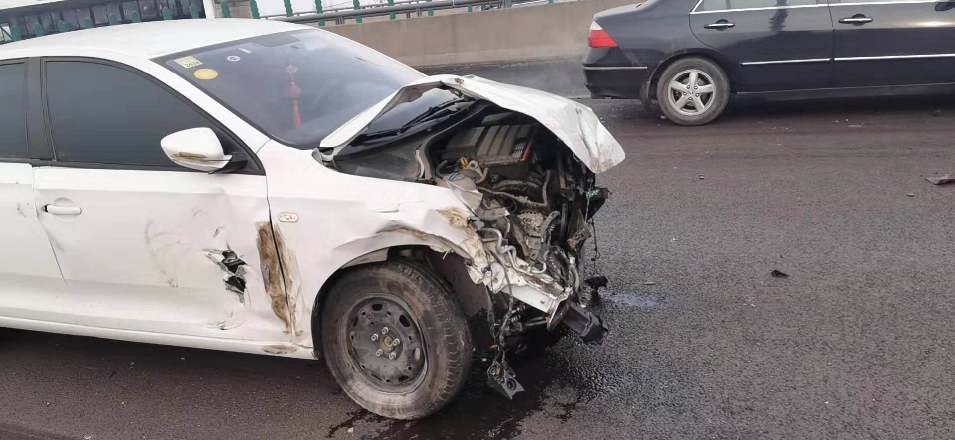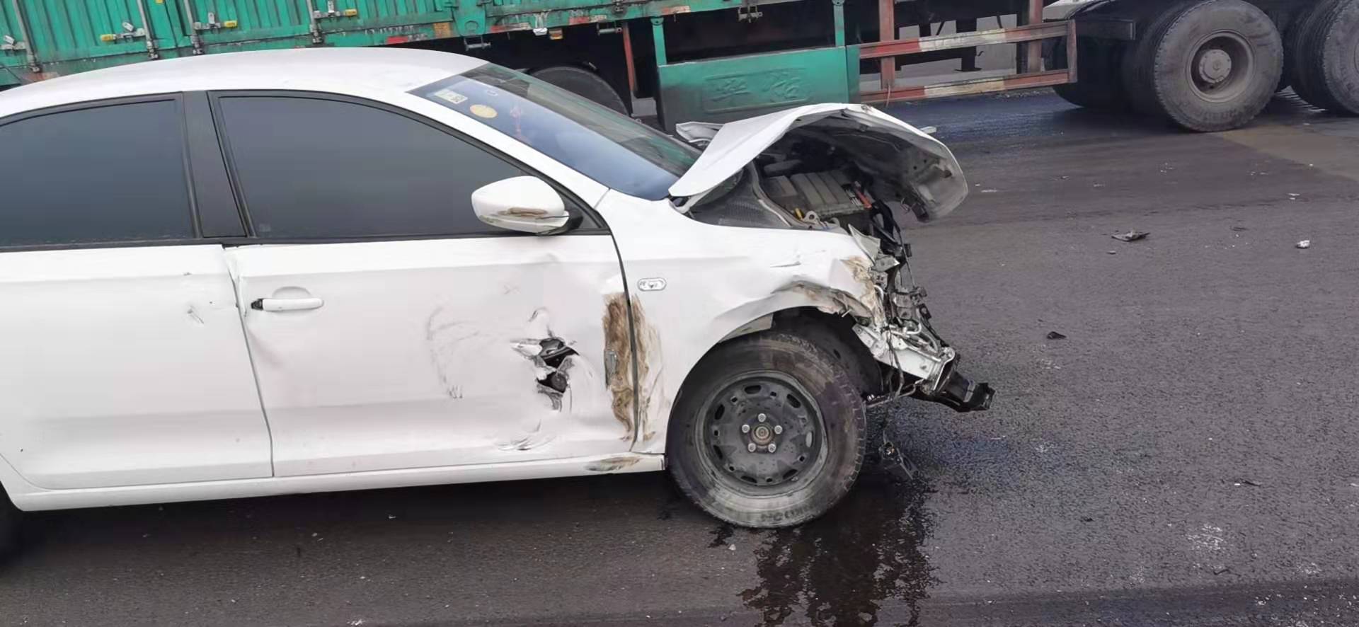 “前后一共撞了3次?!辟Z先生表示,第一次被大貨車從后方撞擊后,自己就踩了剎車,但是也未能阻止后面的2次碰撞。從賈先生提供的照片可以看到,發(fā)生車禍后賈先生的汽車前后均受到不同程度的損壞,車尾出現(xiàn)脫落,車頭引擎蓋被撞至凹陷,大量汽車零部件裸露在外。