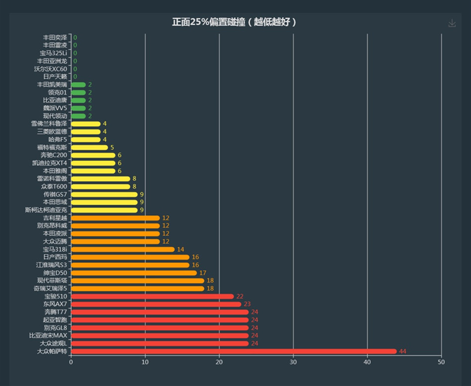 ▲帕薩特和途觀L在測試成績中排名最后2位(來源:中國保險汽車安全指數(shù)C-IASI)