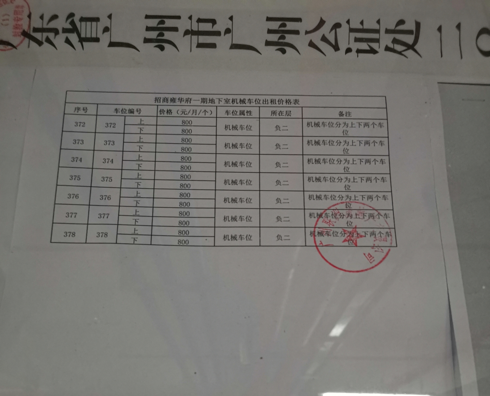 在公告欄上,本刊還發(fā)現(xiàn)了一份機(jī)械車位出租價(jià)格表,在這份表格里,1組機(jī)械車位被分成上下兩個(gè)車位分開出租,上面的車位和下面的車位租金均為800元/月。