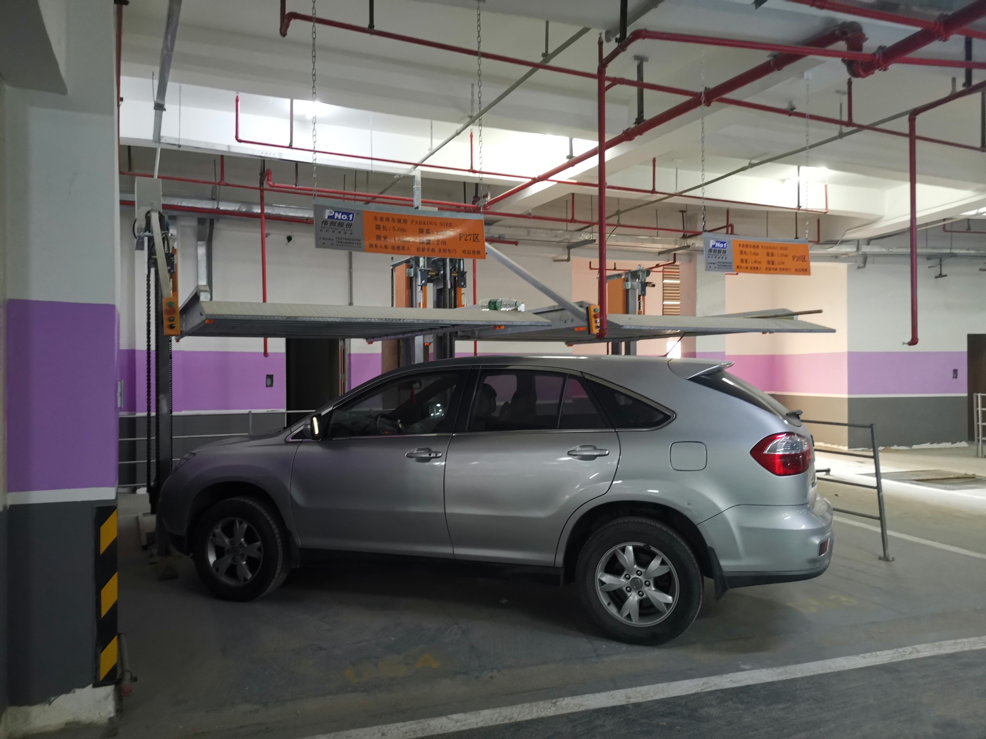 ▲小區(qū)負(fù)二層停車場(chǎng)的機(jī)械車位(本刊攝)