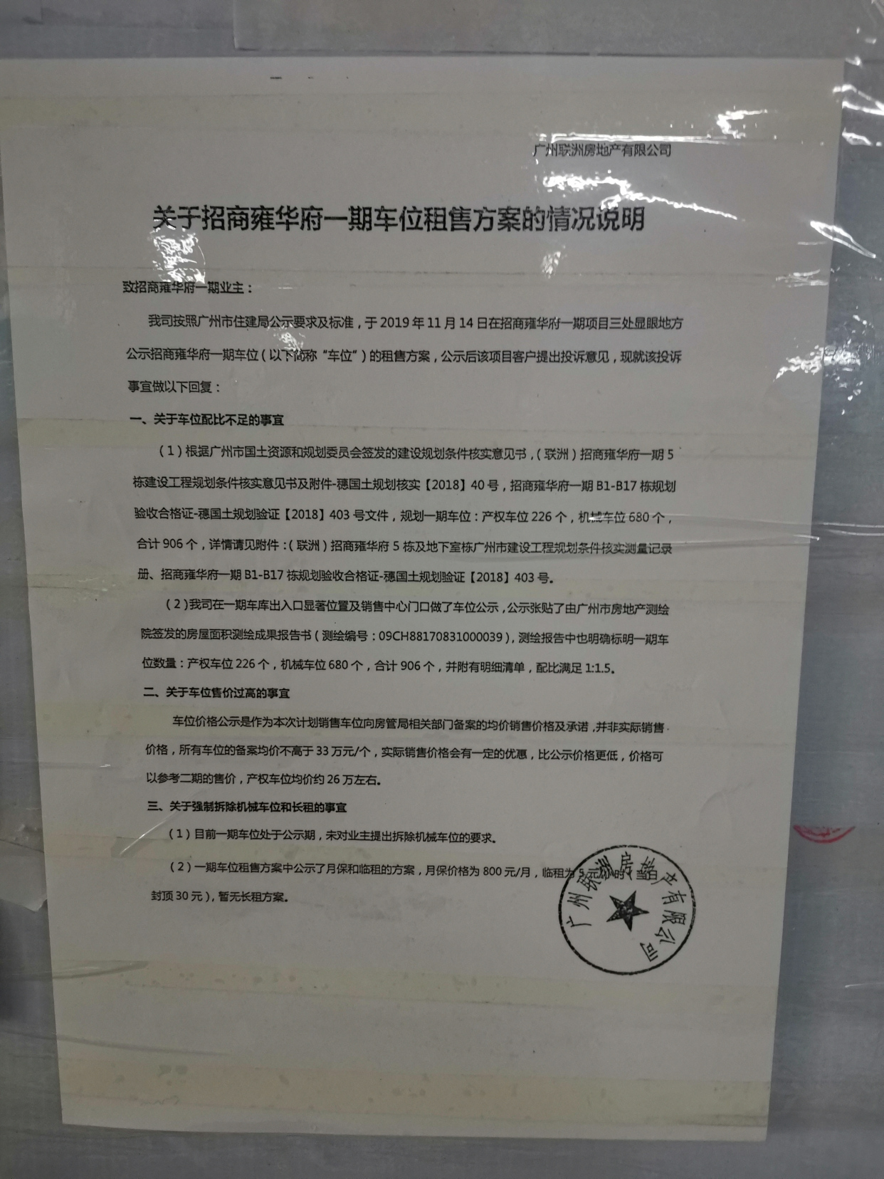 目前,招商雍華府多位業(yè)主已經(jīng)就車位數(shù)量的投訴向廣州市住房和城鄉(xiāng)建設(shè)局、廣州市規(guī)劃和自然資源局反映相關(guān)問題。