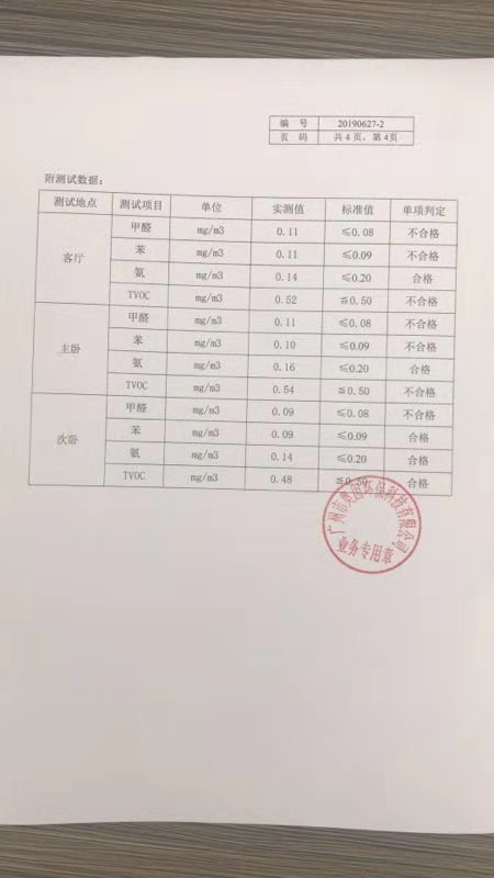 今年6月,阮小姐的孩子已經(jīng)臨近開學,但是房屋里面的異味依然沒有散去。為了證明好萊客提供的家具甲醛超標,阮小姐找到了3家檢測公司對房屋空氣中的甲醛進行檢測,3家公司的檢測結果均顯示甲醛數(shù)值不合格。