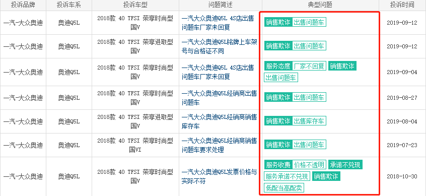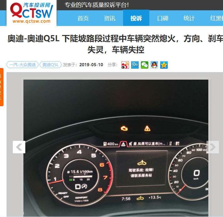 奧迪Q5L屢因質(zhì)量問題被投訴