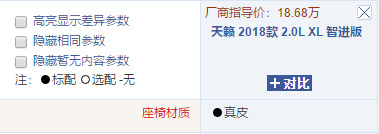 ?▲汽車之家網(wǎng)站顯示天籟2018款汽車座椅材質(zhì)為真皮