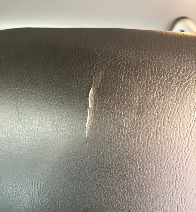 就在今年9月10日,杜先生偶然中發(fā)現(xiàn)正駕駛位座椅的頭枕部分出現(xiàn)表皮開裂的問題?!斑@個裂痕并不齊整,應該不是利器刮的?!倍畔壬虮究硎尽?/p>