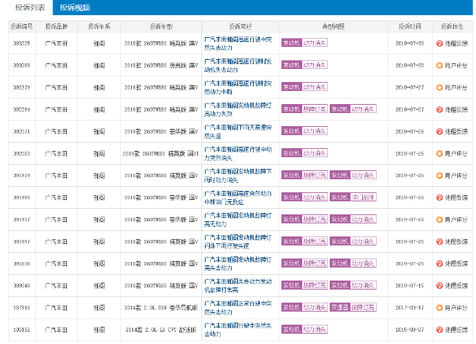 實際上,本田的“失速”問題并非個案,車質(zhì)網(wǎng)上最早的一條關于本田雅閣發(fā)動機動力消失的投訴可以追溯到2015年,而針對2018款雅閣的投訴已經(jīng)超過了30條。