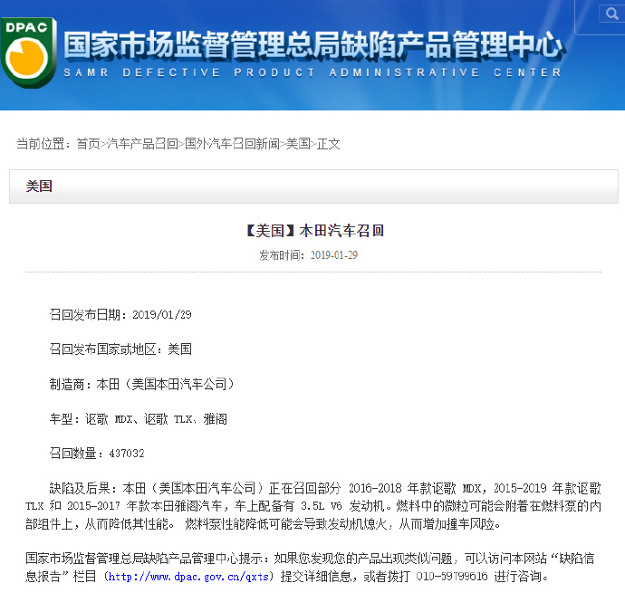 ▲東風本田宣布召回“失速門”涉事INSPIRE汽車