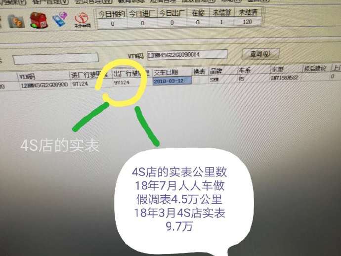 另外,該車輛的行駛里程在購買頁面上標稱4.5萬公里。但當?shù)貣|南汽車官方4S店的廠家官方維修記錄顯示:2018年3月份其出廠行駛里程已經(jīng)達到9.7萬公里。