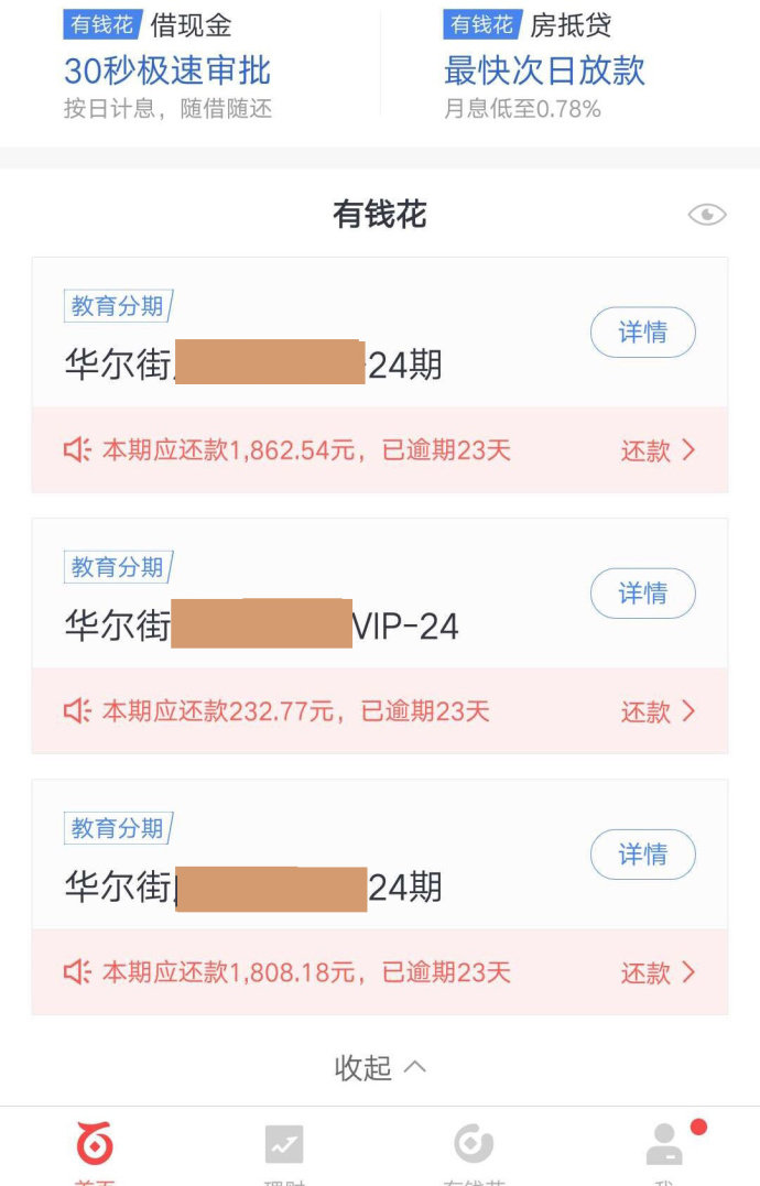 ?百度有錢花APP華爾街英語教育貸款頁面(消費者供圖)