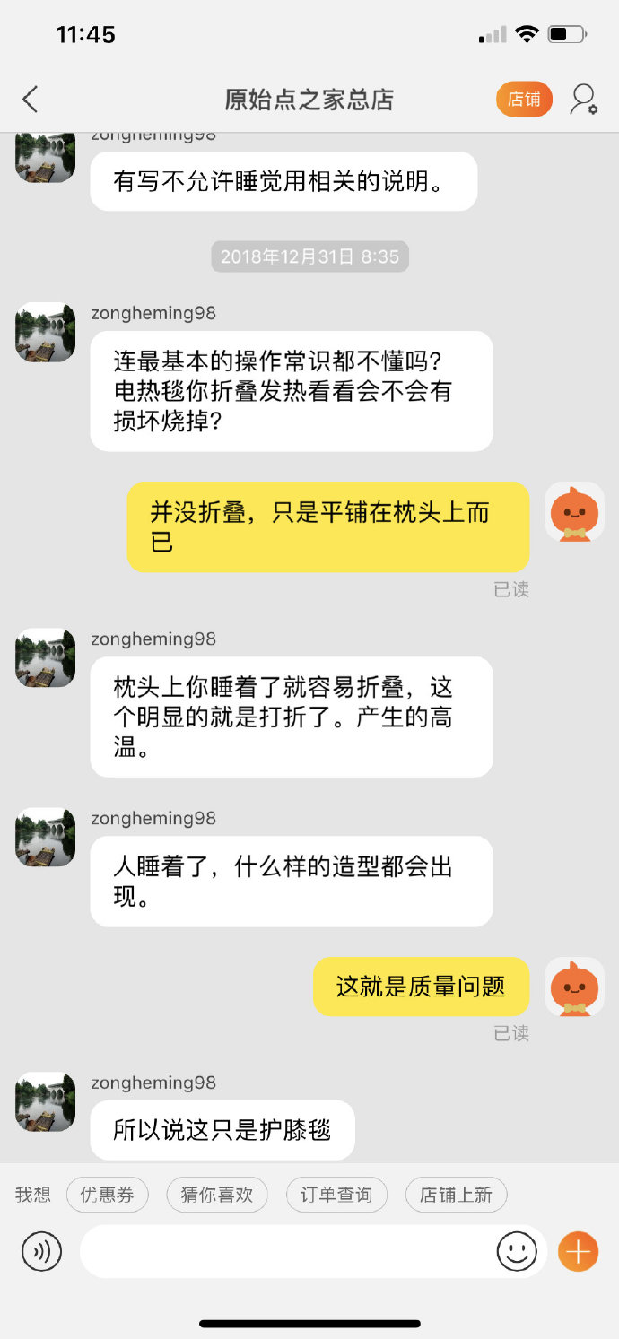 對(duì)于消費(fèi)者劉女士,賣(mài)家在自身宣傳無(wú)使用警示的情況下,反而利用廠家的說(shuō)明書(shū)來(lái)指責(zé)她折疊使用、違規(guī)操作。據(jù)劉女士介紹,當(dāng)晚她并未折疊使用該電熱毯,只是將電熱毯平鋪在枕頭上。