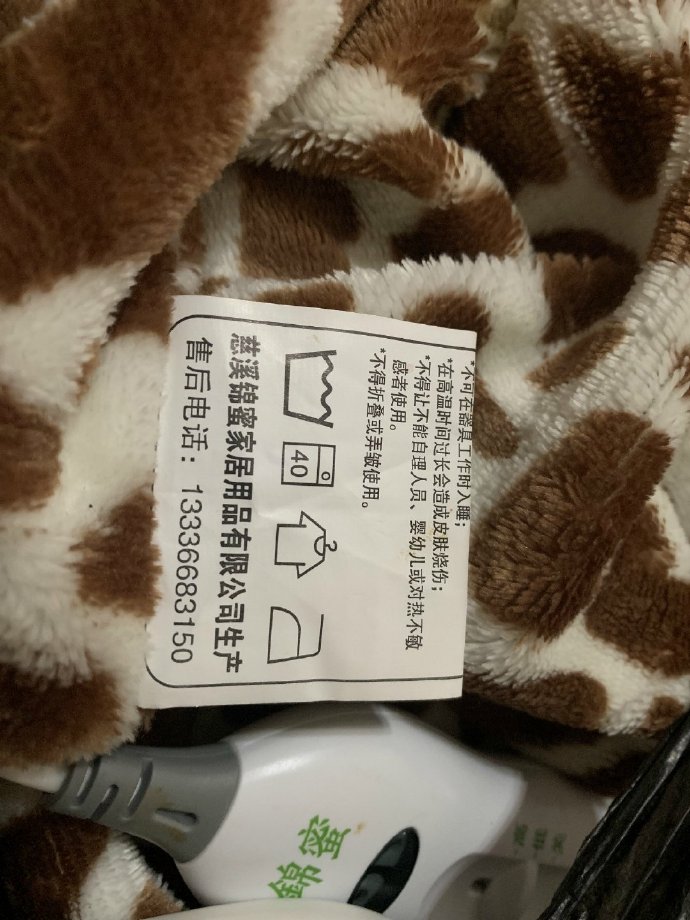 ?該電熱毯產(chǎn)品制造商慈溪錦蜜家居用品有限公司在使用說(shuō)明中打出了“不得折疊或弄皺使用”、“不可在器具工作時(shí)入睡”、“在高溫時(shí)間過(guò)長(zhǎng)會(huì)造成皮膚燒傷”的字樣。