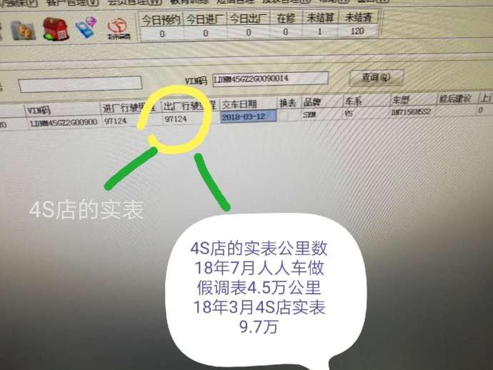 隨后,為了作進(jìn)一步證實(shí),吳先生又來到當(dāng)?shù)貣|南汽車官方4S店查詢這輛車的車況信息。通過工作人員查詢到這輛二手車的廠家官方維修記錄是:2018年3月份其出廠行駛里程已經(jīng)達(dá)到97124公里。而他購車時人人車平臺顯示的車輛行駛里程是4.5萬公里,兩者里程數(shù)據(jù)差別巨大。