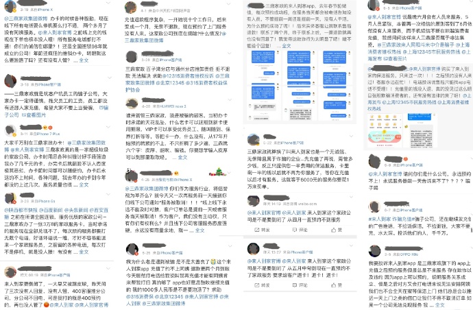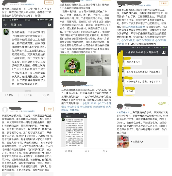 ?微博平臺上對三鼎、來人家政的投訴截選