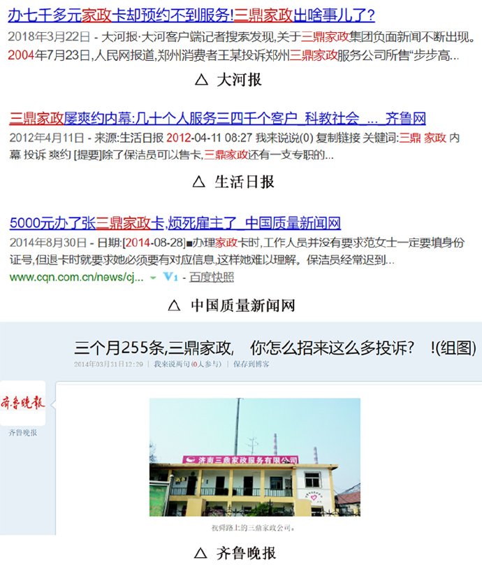 ?多家媒體報道三鼎家政遭大量用戶投訴