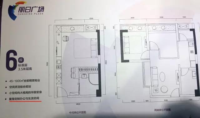 有業(yè)主向《消費(fèi)者報道》記者展示了麗日廣場當(dāng)初宣傳的傳單。在傳單的左下角,“量身定制辦公與生活空間”的字眼十分醒目。而從房屋規(guī)劃圖看來,床和浴室的設(shè)計也十分明顯。