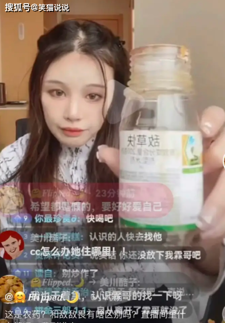 受不了精神被長(zhǎng)期摧殘的羅小貓?jiān)谝淮沃辈ブ?,表示自己?huì)喝下一種叫“敵草快”的農(nóng)藥。在直播視頻中,羅小貓打扮精致,但是不難發(fā)現(xiàn)她真的憔悴了許多,神情哀傷,頭發(fā)也掉了不少,發(fā)際線(xiàn)都很明顯地往后移。