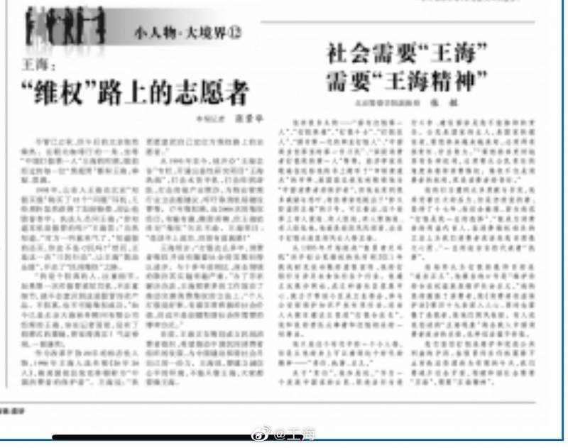 王海:我不覺得舉步維艱啊。要對職業(yè)打假人群體有個全面的認識,得區(qū)分打假、假打和瞎打。現(xiàn)在社會上有個誤區(qū),只要是向商家索賠要錢的,接直接劃進職業(yè)打假的圈子,哪怕是碰瓷敲詐吃白食的,實際上是有人故意抹黑。