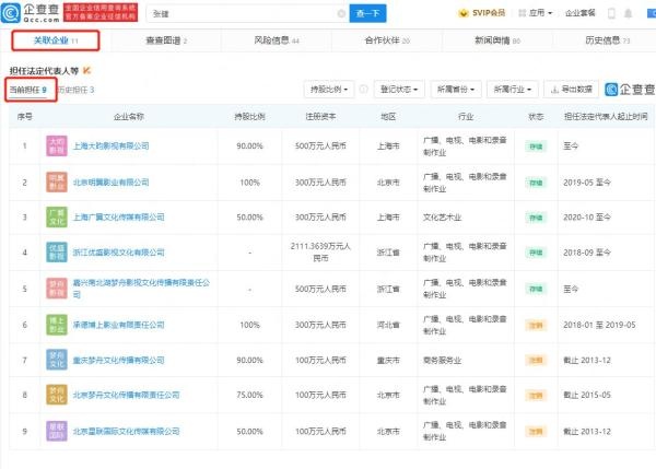以前張若昀和張健,一起創(chuàng)辦一家影視劇公司,但是后面張健就退出股東及法定代表人隊(duì)伍,把公司交給張若昀。
