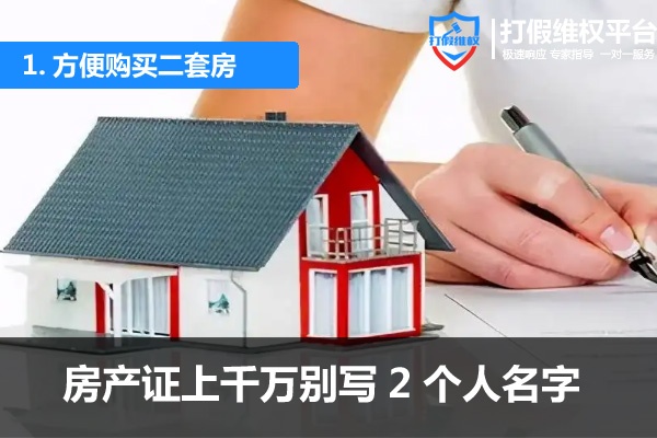 現(xiàn)在很多城市都有限購政策也是房產(chǎn)證上千萬別寫2個人名字的原因,不管是在本地還是在外地,只要買過房或者有過房貸未還清,房子有沒有賣掉,再買房都算二套。而且由于雙方都有了貸款記錄,假離婚再買房也算二套,而第二套的首付比例,以及相關(guān)的貸款優(yōu)惠政策都是要少于首套房的。并且如果以夫妻一方的名義購買貸款房產(chǎn)證上寫兩個人名字,假離婚之后,另一方有購房資格,單獨購買的話,是算首套,也有時間限制,所以就有人提出房產(chǎn)證上千萬別寫2個人名字了。