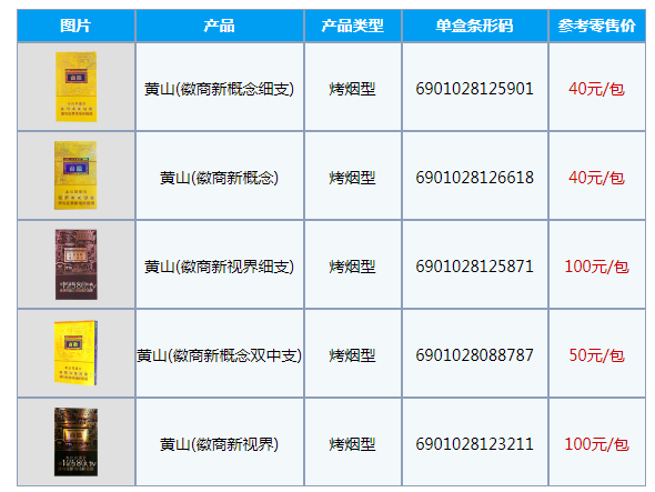 徽商香煙的系列還是很多的,在1985年的時(shí)候安徽中煙工業(yè)公司卷煙廠開發(fā)出了徽商香煙這個(gè)品牌,上市后受到了很多煙民的喜愛。主要的系列有黃山(新視界)80元一包、黃山(硬新概念)32元一包、黃山(徽商新視界)100元一包、黃山(徽商新概念細(xì)支)40元一包、黃山(徽商新視界細(xì)支)100元一包、黃山(徽商新概念)40元一包、黃山(徽商新視界中支)售價(jià)不詳、黃山(徽商)40元一包、黃山(徽商新概念雙中支)50元一包、黃山(徽商石斛爆珠細(xì)支)100元一包。