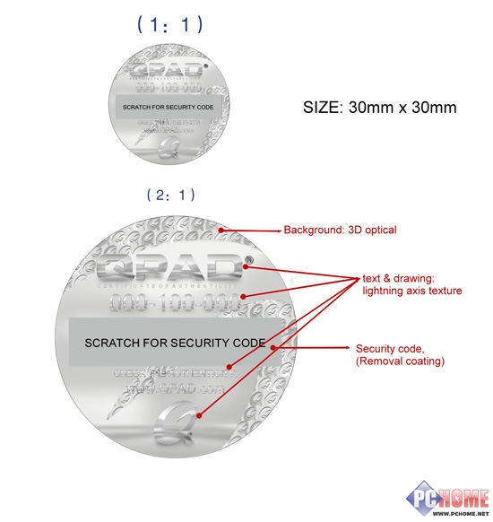 其實(shí),在購(gòu)買QPAD的鼠標(biāo)墊時(shí),我們只要注意以下它獨(dú)特的鐳射標(biāo)識(shí)就可以避免買到假貨了,一般而言,QPAD的鐳射標(biāo)識(shí)的大小為30mm*30mm,并且在標(biāo)識(shí)的字母上都具有很強(qiáng)烈的3D效果,刮開防偽圖層后,可以得到每一款產(chǎn)品獨(dú)有的一組序列號(hào),登陸QPAD的官方網(wǎng)站,你就可以查詢到它的真?zhèn)瘟恕?/P>
