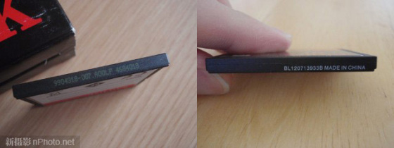 真卡的序列號(hào)應(yīng)該位于CF卡邊緣的右下位置(一些舊卡的序列號(hào)可能是兩行排列)。真正的SanDisk的序列號(hào)是類似“BL120713933B”這樣的。其中前四位數(shù)字代表了生產(chǎn)年月。當(dāng)然,有著正確序列號(hào)的卡也不一定是真貨。