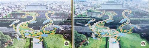 小盒正面圖案印刷差異對比:真煙小盒正面圖案草坪、臺階、屋頂瓦片清晰連貫;假煙小盒正面草坪、臺階、屋頂瓦片模糊不清,時有時無。