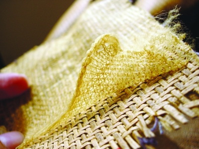 “這看似藤條的東西竟是類似紙一樣的東西包裹的紗線,根本沒有藤條的影子?!弊蛱?,記者將“藤席”提供給質(zhì)檢部門鑒定。