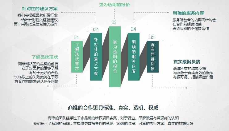 價(jià)格:選擇第三方服務(wù)公司,價(jià)格無(wú)疑是最大的問(wèn)題。價(jià)格高,覺(jué)得貴,價(jià)格低覺(jué)得不靠譜。具體的費(fèi)用都是需要根據(jù)品牌實(shí)際情況而定:1、需求;2、品牌資質(zhì)(是否具備商標(biāo),處理難易程度:R商標(biāo)<TM商標(biāo)<專利);3、管控平臺(tái)(阿里系之外有沒(méi)有其他主流電商平臺(tái)需要管理);4、操作頻次(每個(gè)月的處理次數(shù))。所以在不了解品牌需求時(shí)隨意的報(bào)價(jià)都是不符合邏輯的。也不適合企業(yè)選擇要求的。